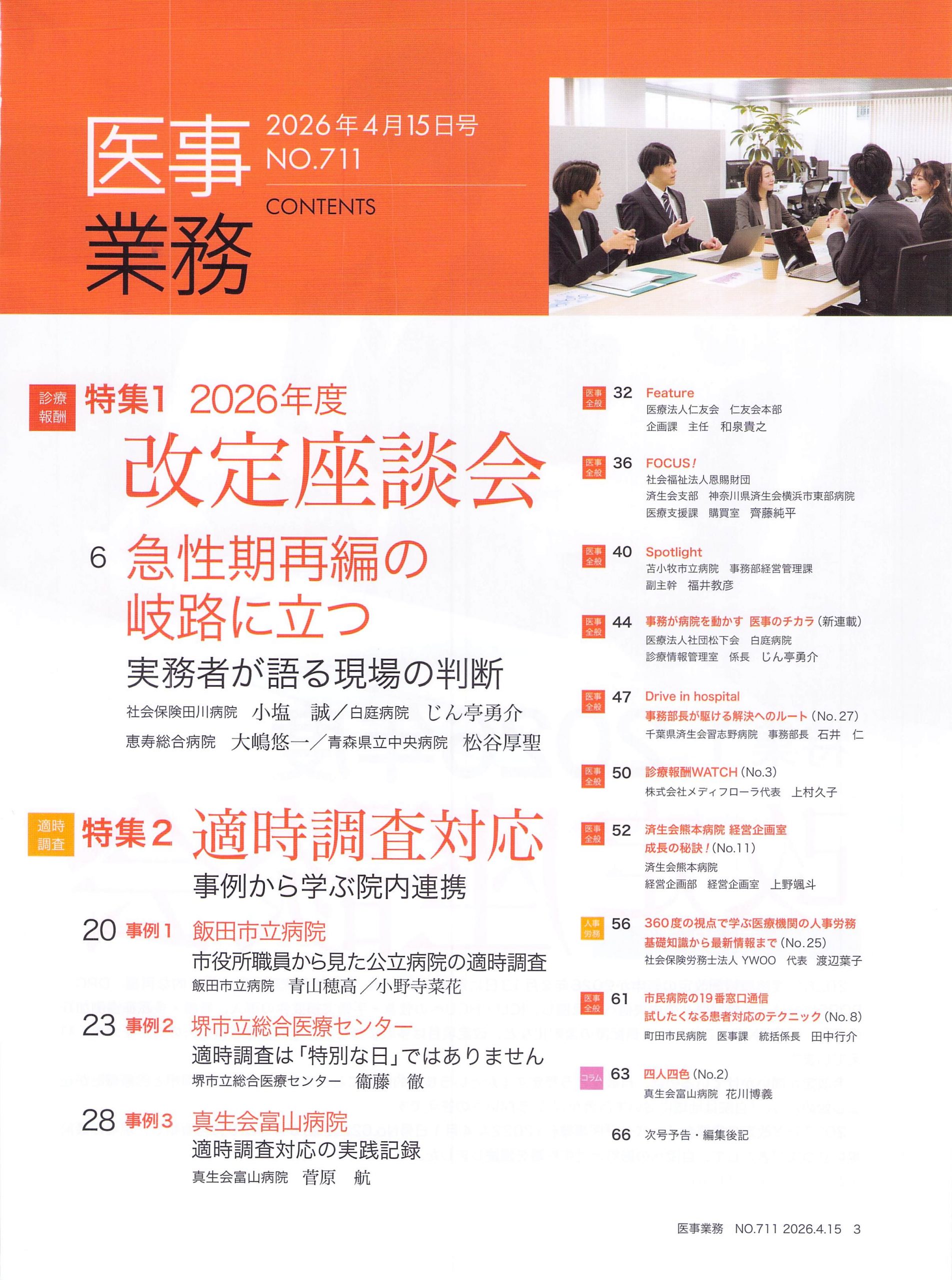 2026年4月15日号医事業務 2026年4月27日上村久子ブログ TweetShare on Tumblr 今月の医事業務です。 今回は「これまでになかった『人を少なく配置することができる条件が示された施設基準』」について執筆しました。 お手隙の時にでもご覧ください!